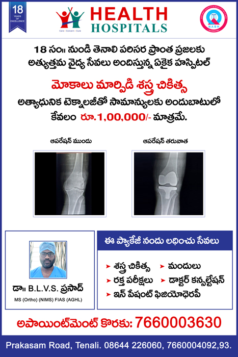 Health Hospitals, established in 2006 to offer healthcare of highest standards to the population of Tenali and surrounding villages with service as motto. "CARE : CONCERN : CURE"