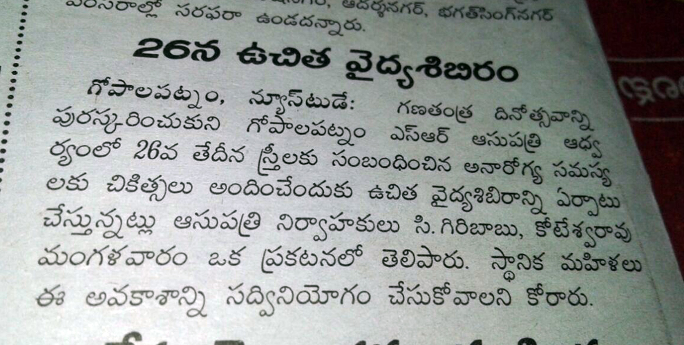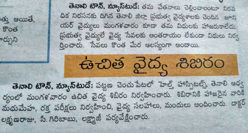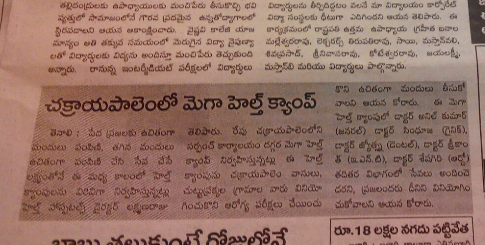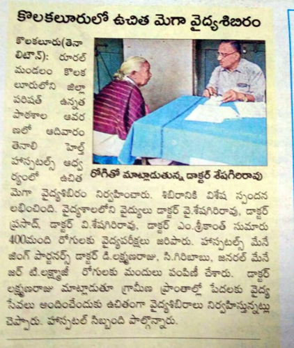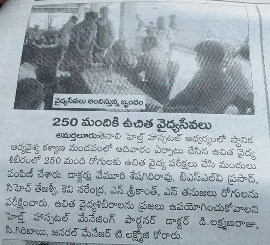 Free Health Camp at Market Yard, Tenali