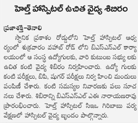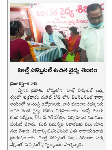 Free Health Camp at BSNL Office, Tenali