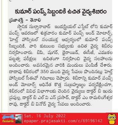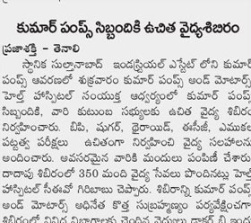 Free Health Camp at Kumar Pumps, Autonagar, Tenali
