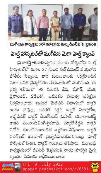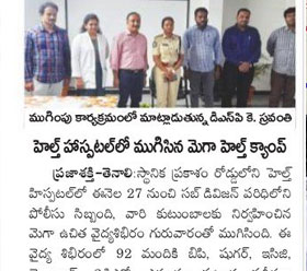 Free Health Camp at for Police persons and their Families, Tenali